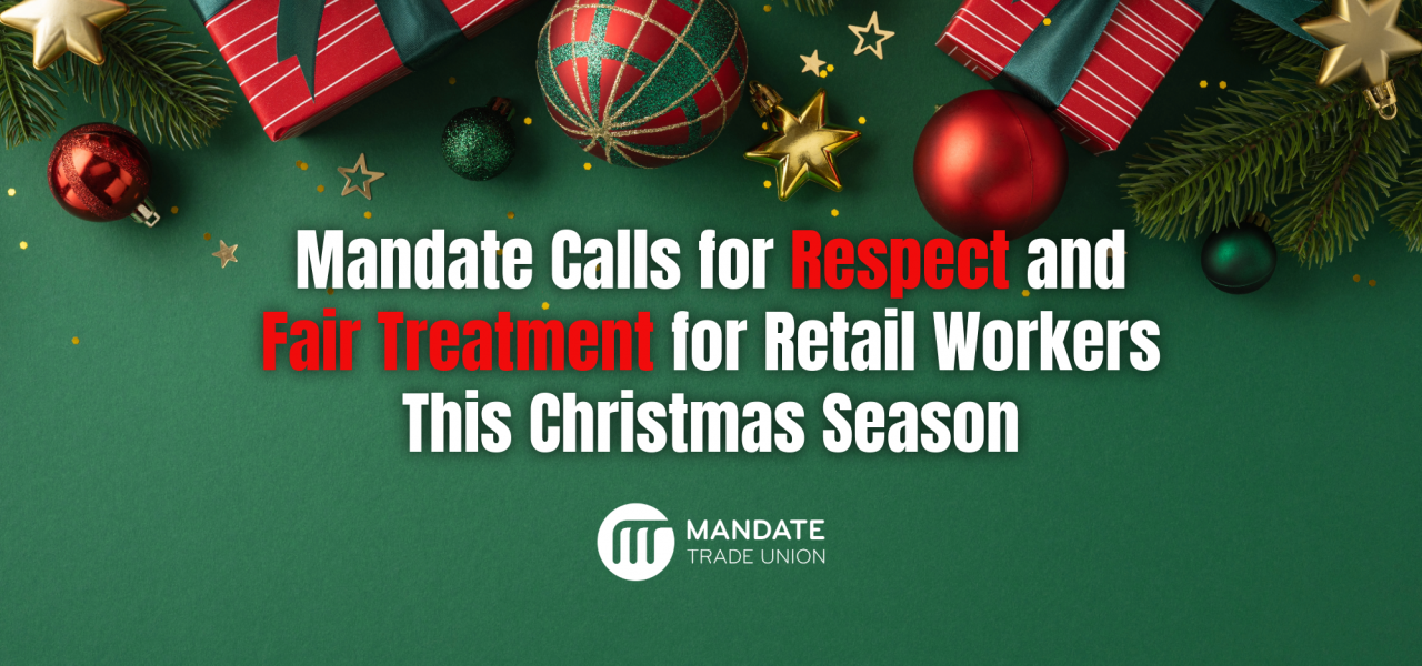 Mandate Trade Union has today – with one month to go to Christmas Eve – called on retail employers and shoppers to show respect for retail workers as the Christmas period intensifies.